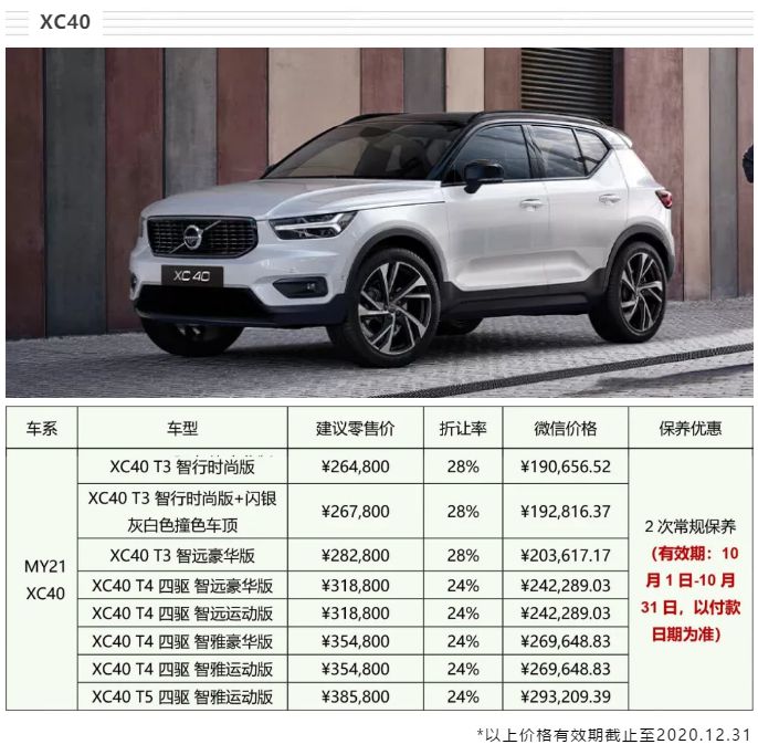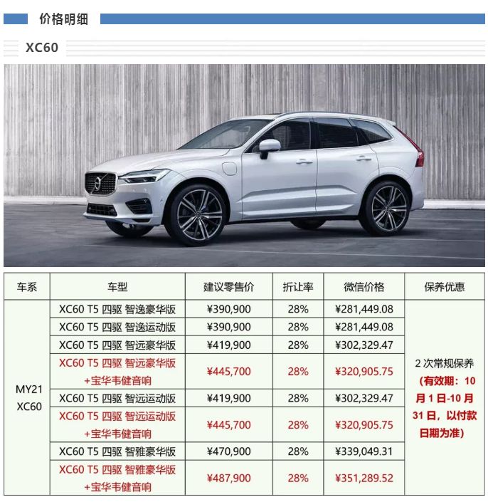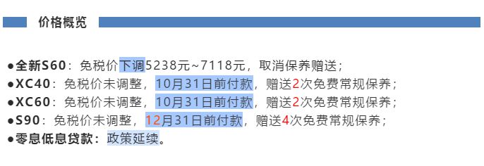 2020年4季度沃尔沃留学生免税价格已发布,全新S60免税价格下调了5-7千元不等,其他车型价格未作调整。沃尔沃全系车型零息及低息金融方案依然延续。4季度价格详情如下。