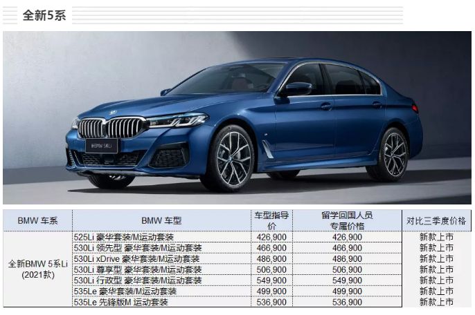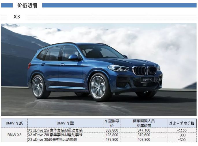 华晨宝马2020年4季度留学生免税车价格发布,X3和现款5系免税价格下调。2021款新5系已上市暂无留学生购车价格优惠,请关注2021年1季度价格方案。3系及X1不同型号价格有涨有降。X2价格变化不大,1系价格未作调整。