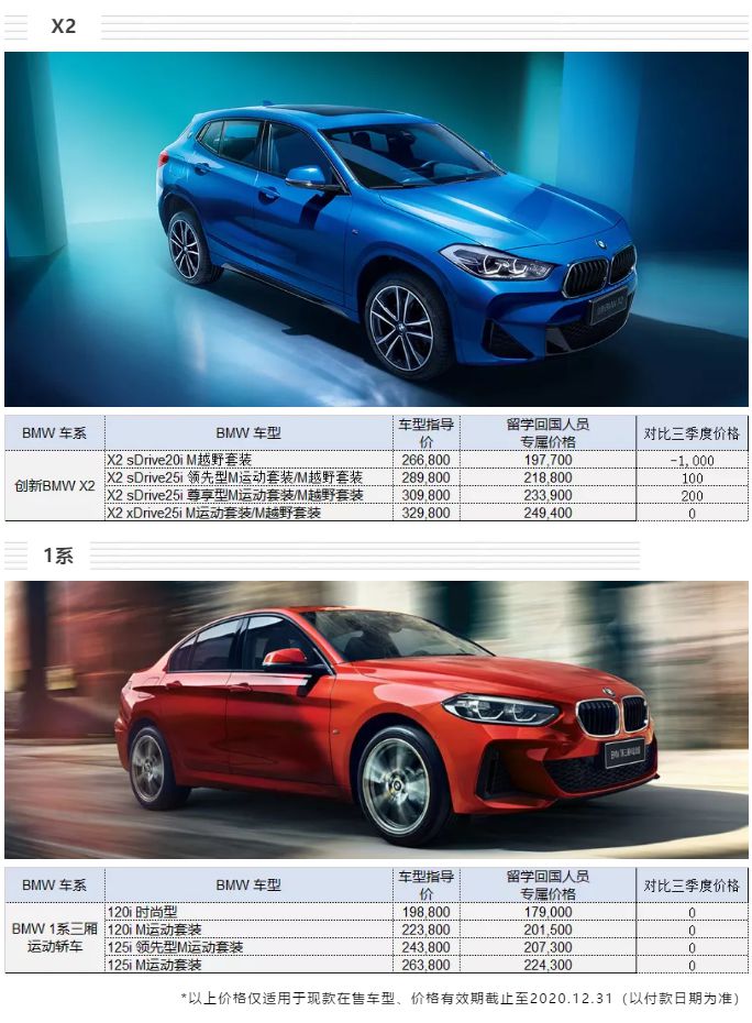 华晨宝马留学生免税车2020年4季度价格发布!