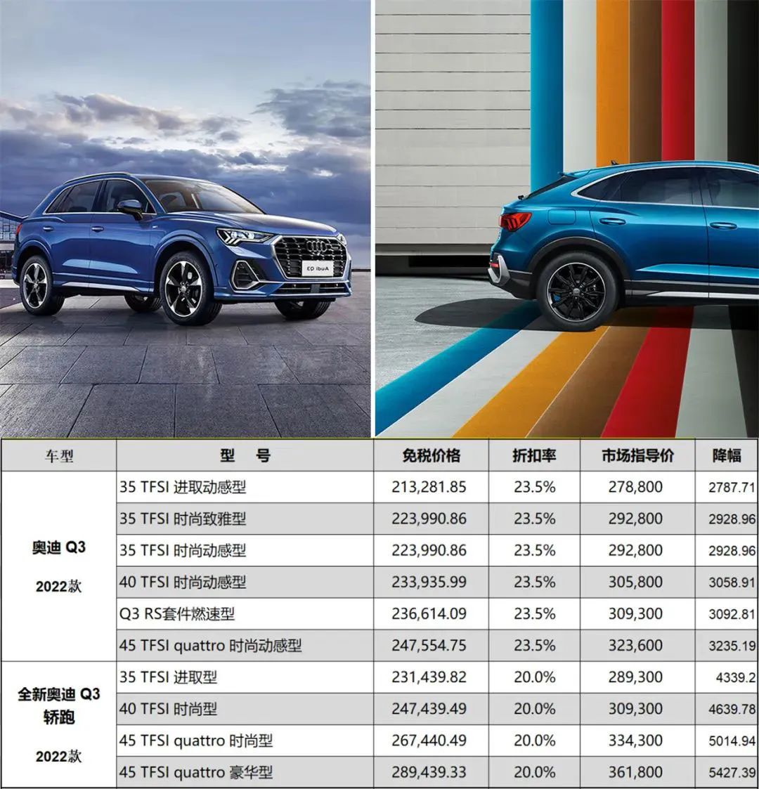 奥迪Q3轿跑免税价下调4339~5427元