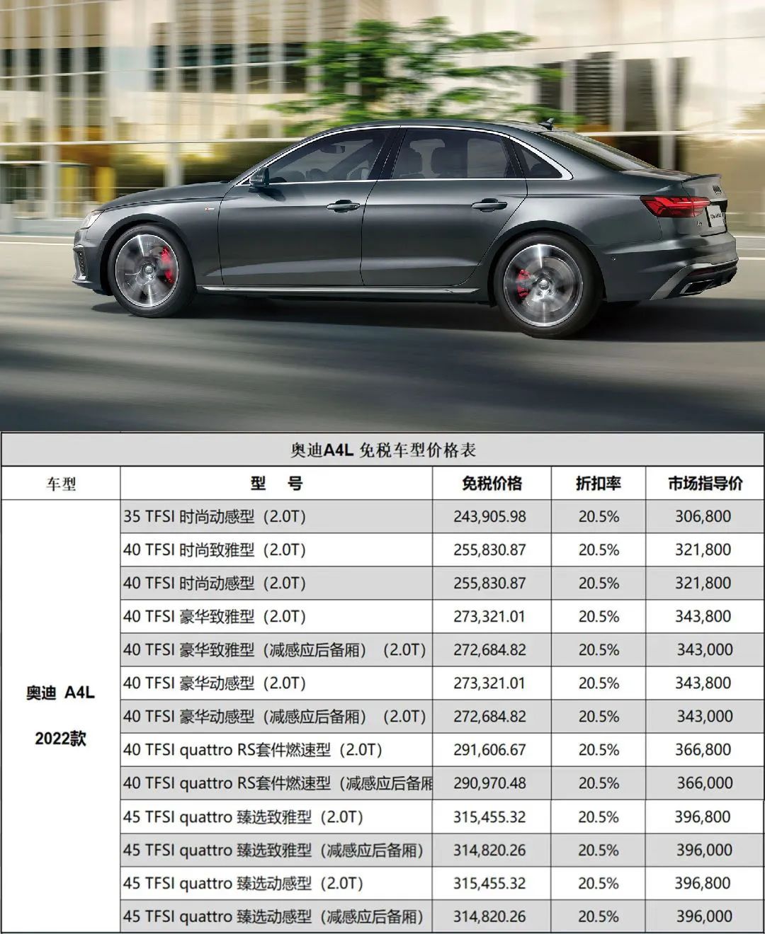 一汽奥迪第二季度留学生免税车价格公布!