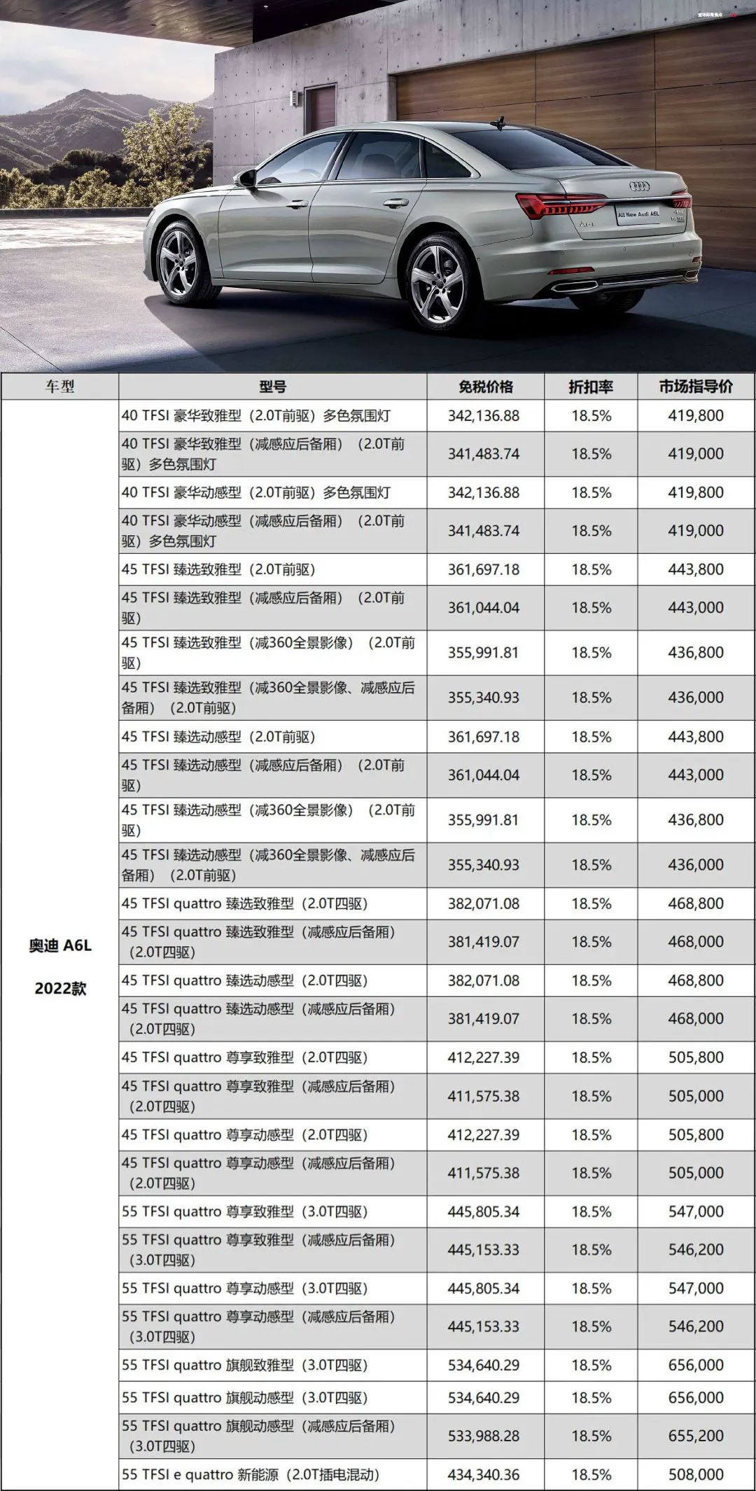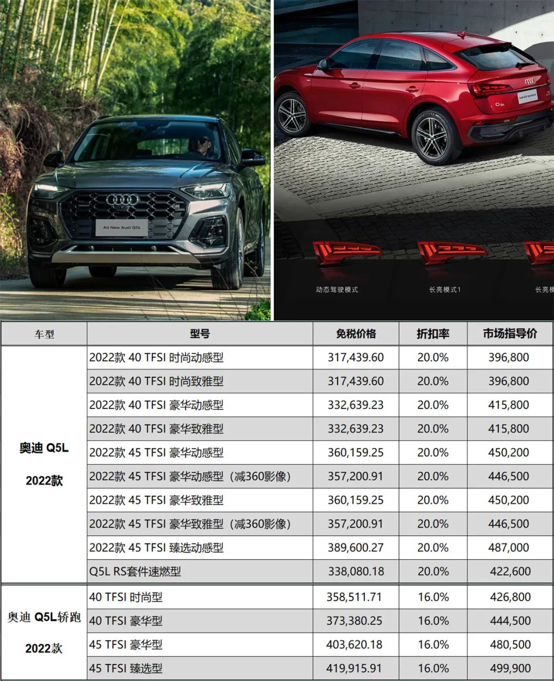 奥迪Q5L、Q5L轿跑、A6L、A4L、e-tron价格与第一季度保持一致