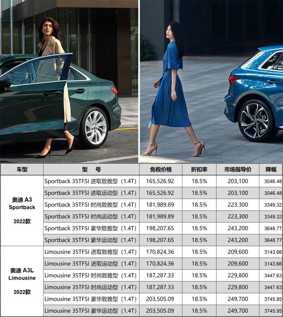 奥迪A3 Sportback免税价下调3046~3648元