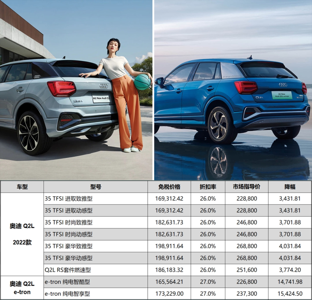 奥迪 Q2L e-tron免税价下调14741~15424元