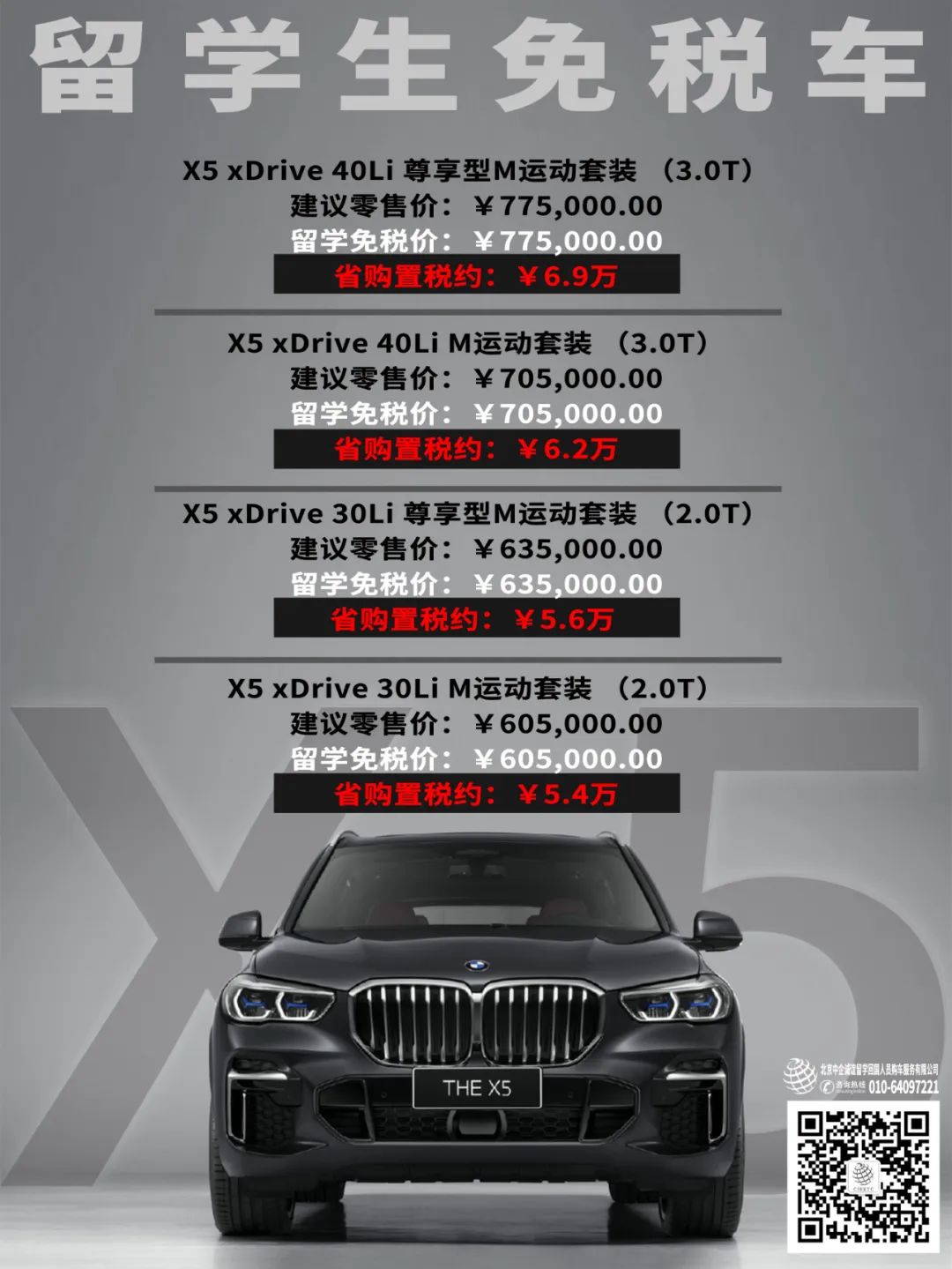 宝马X5留学生免税车价格政策发布!