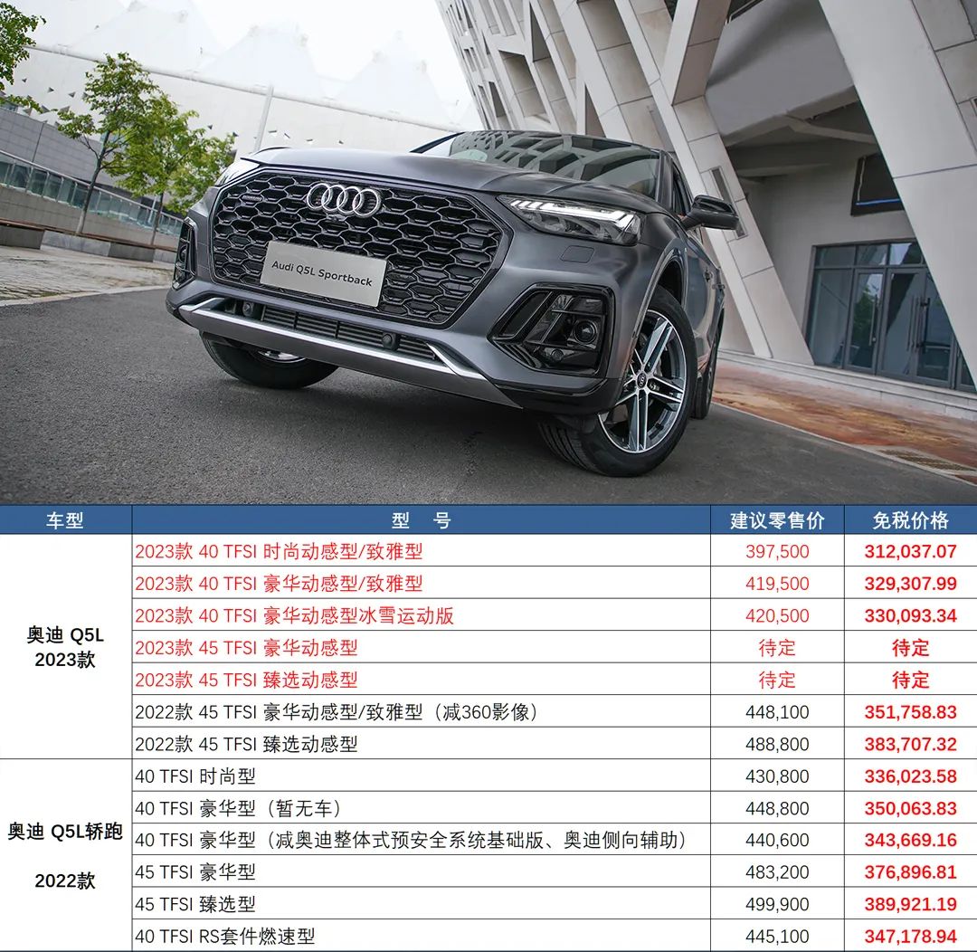 全新奥迪 Q5L,外观变化不大,车型配置方面