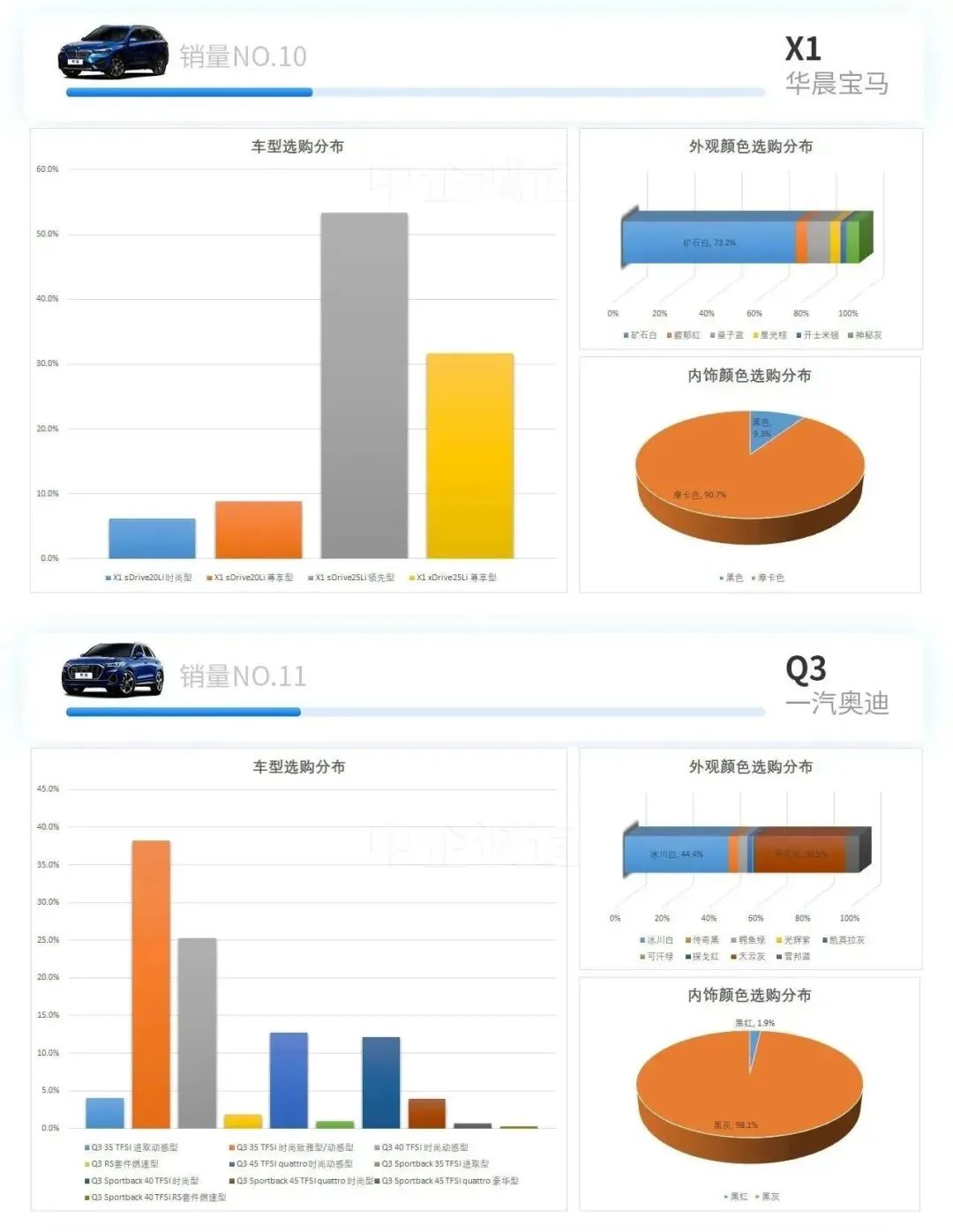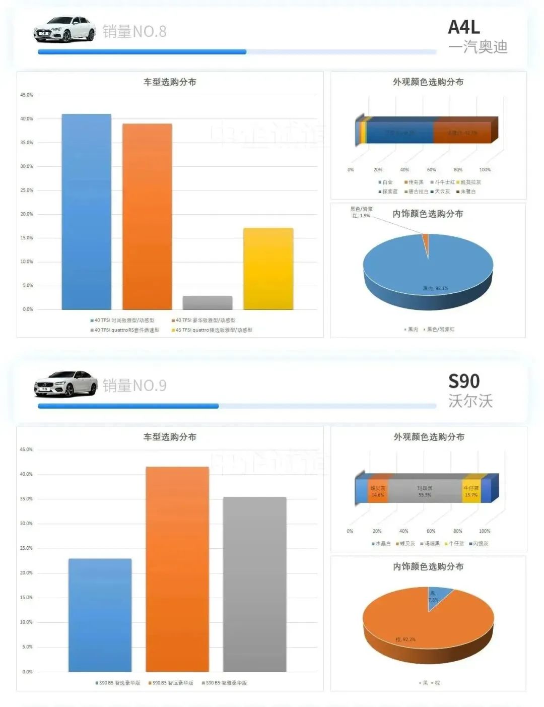 车型销量TOP14及它们的型号、颜色、内饰选购分布