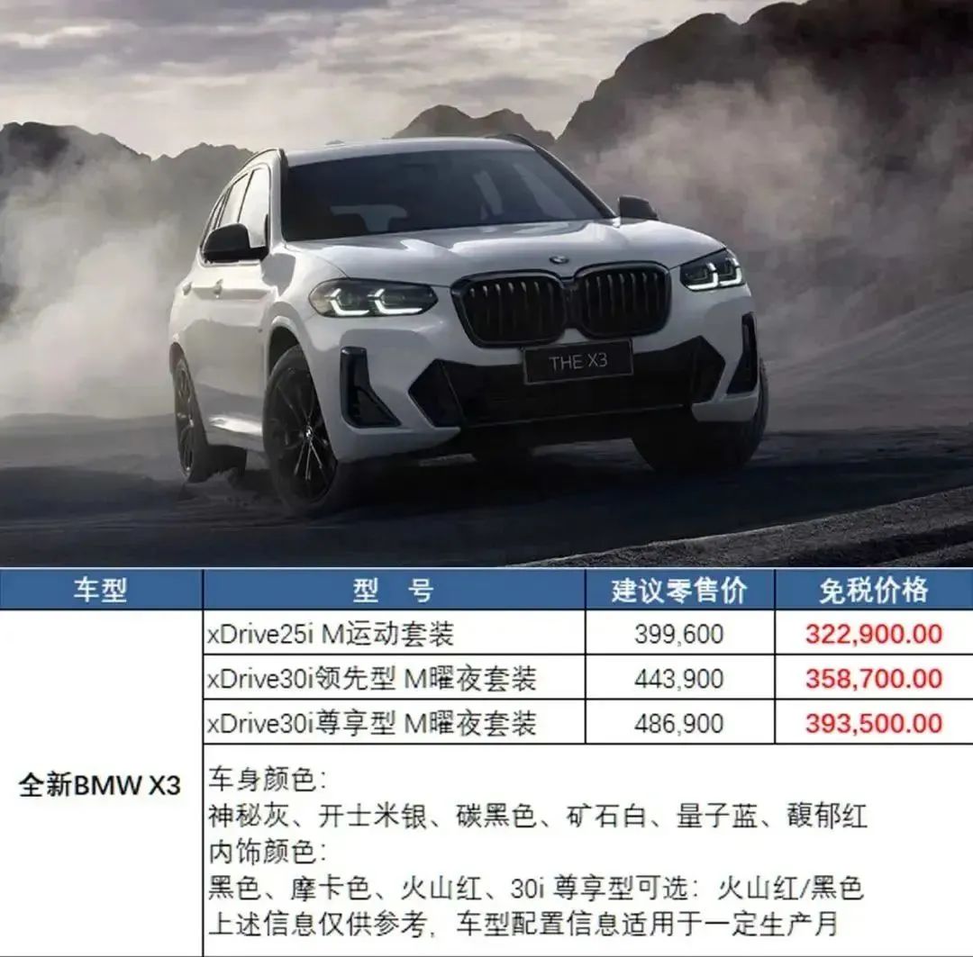 宝马X3是一款中型豪华SUV,拥有时尚动感的外观设计,优雅而充满力量。其设计精美的外观线条流畅,家族式双肾形进气格栅和新型天使眼大灯组令人印象深刻。车内空间宽敞舒适,提供卓越的驾驶体验和舒适的乘坐体验。其出色的动力系统和四驱系统为驾驶者提供多种驾驶模式,实现灵活多样的驾驶体验。