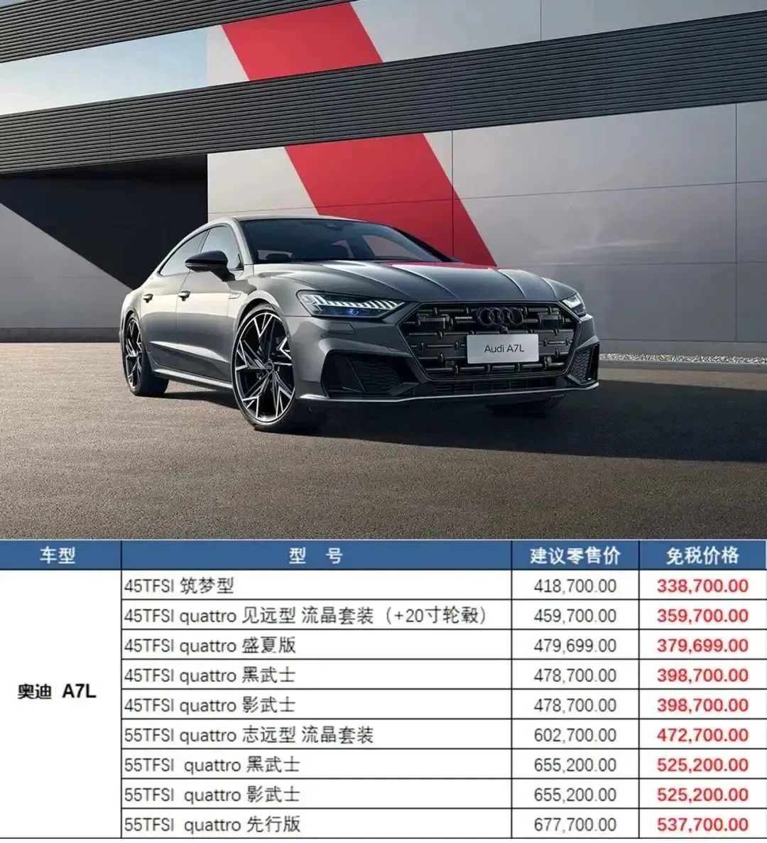 奥迪A7L是一款豪华中大型轿车,拥有优雅大气的外观设计,经过上汽调整,使得A7L的车内空间宽敞舒适,配置丰富,驾驶体验优异。A7L搭载2.0T/3.0T发动机,匹配7挡变速箱,在保持出色的加速性能的同时还能兼顾良好的燃油经济性。