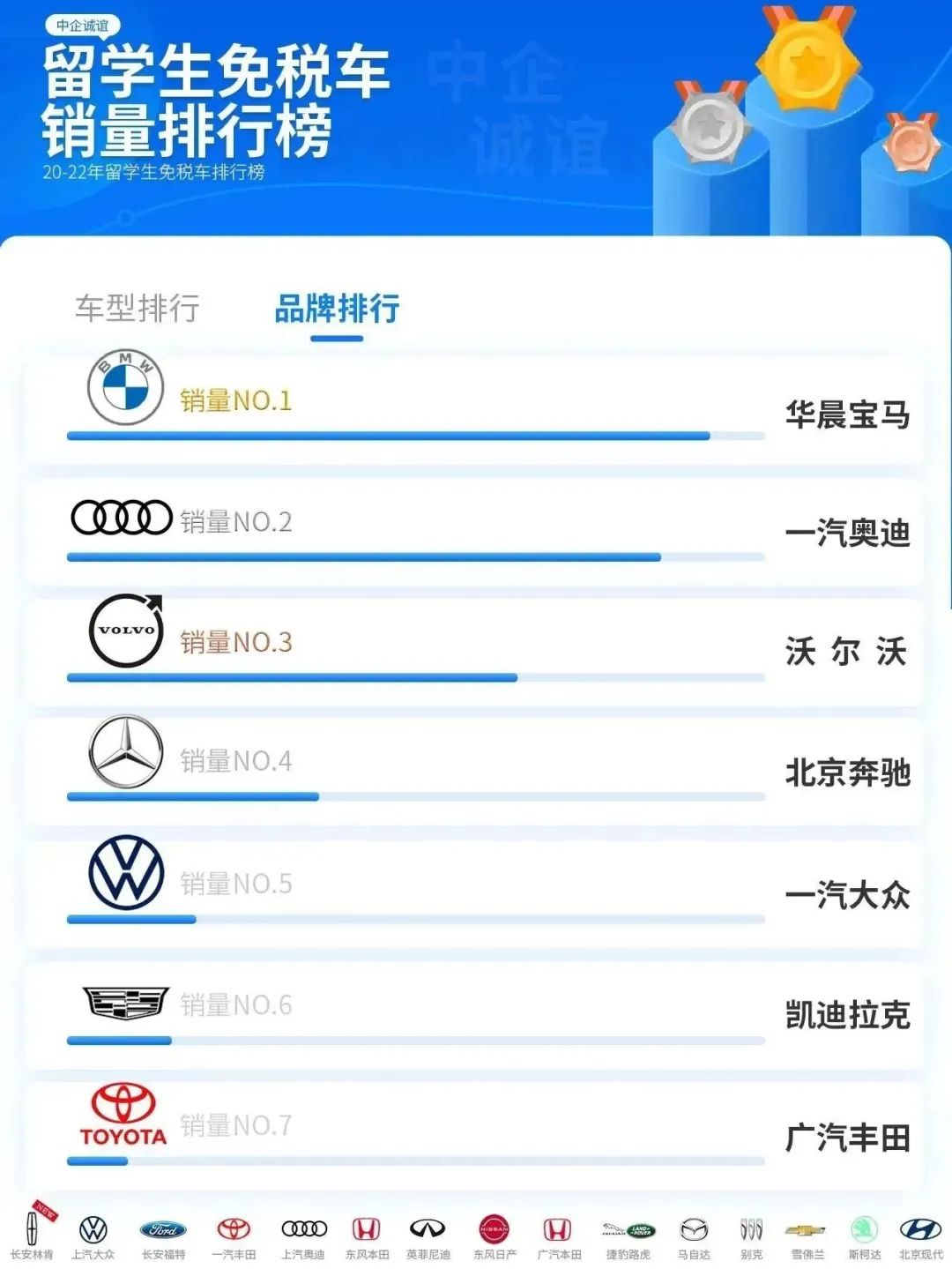 近年来免税车市场品牌销量TOP7