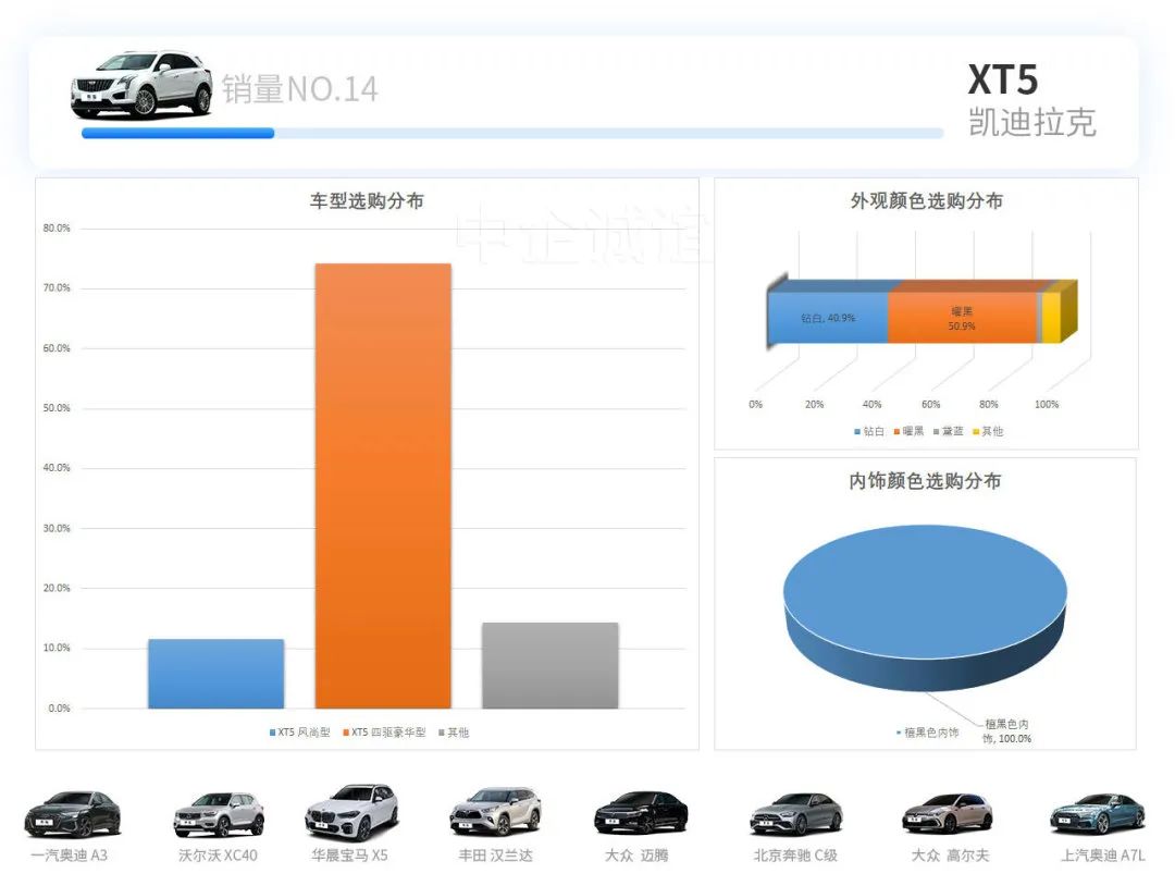 车型销量TOP14及它们的型号、颜色、内饰选购分布