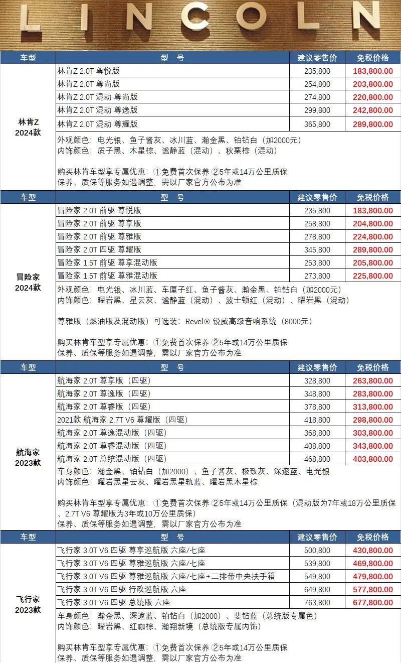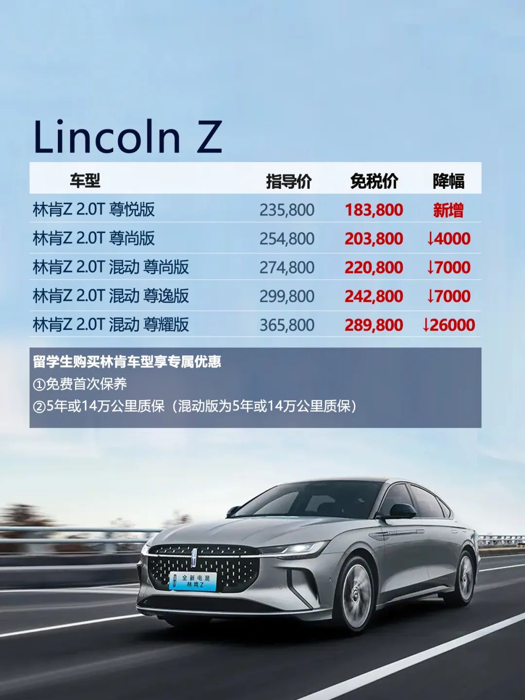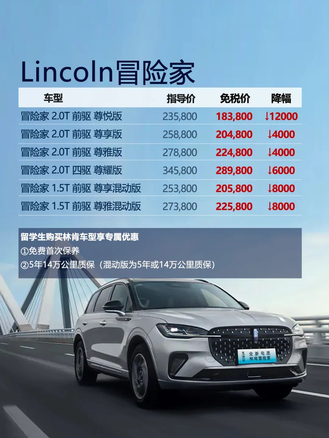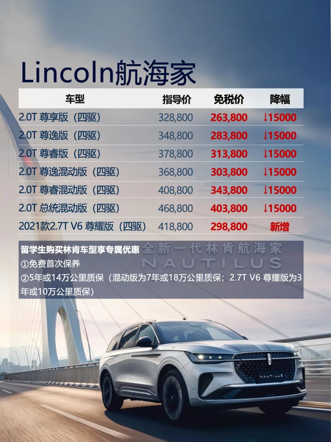 目前林肯留学生免税车全系相比终端价格优势明显,还没申报的同学可以联系中企诚谊各地代办处办理哦