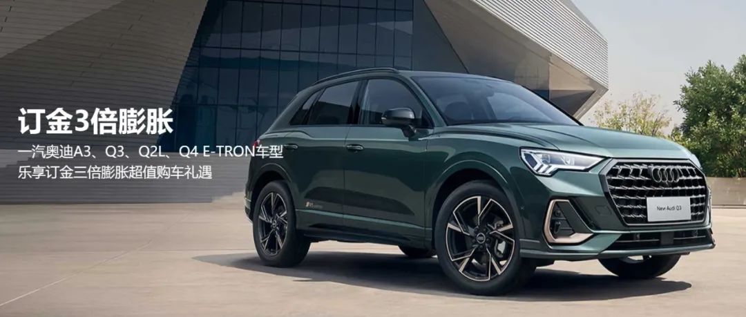 当然,一汽奥迪旗下的其他几款车型也在热销中,2024年4月1日至6月30日线上下单缴付1000元订金并完成系统核销,且在9月30日前完成汇款发车的A3、Q3家族、Q2L、Q4 e-tron车型,乐享订金三倍膨胀(1000元订金抵3000元车款)超值购车礼遇。
