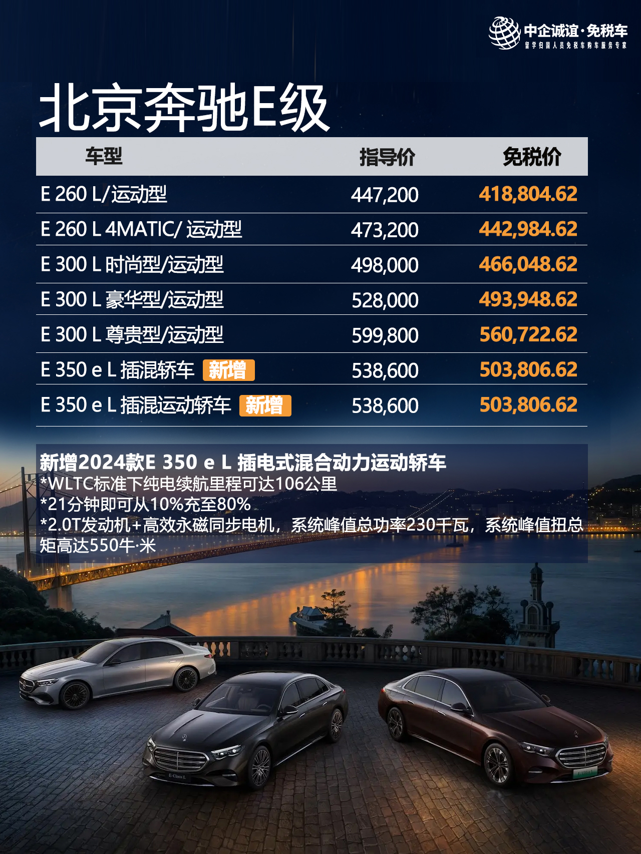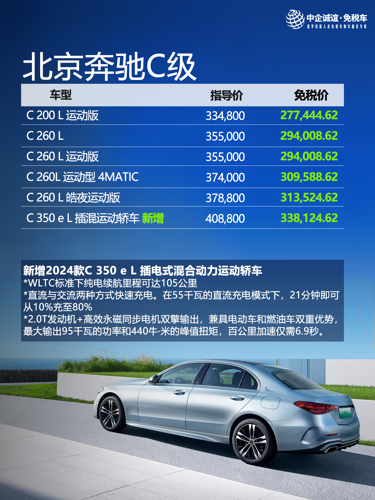 北京奔驰留学生免税车型更新,新增插混动力车型。