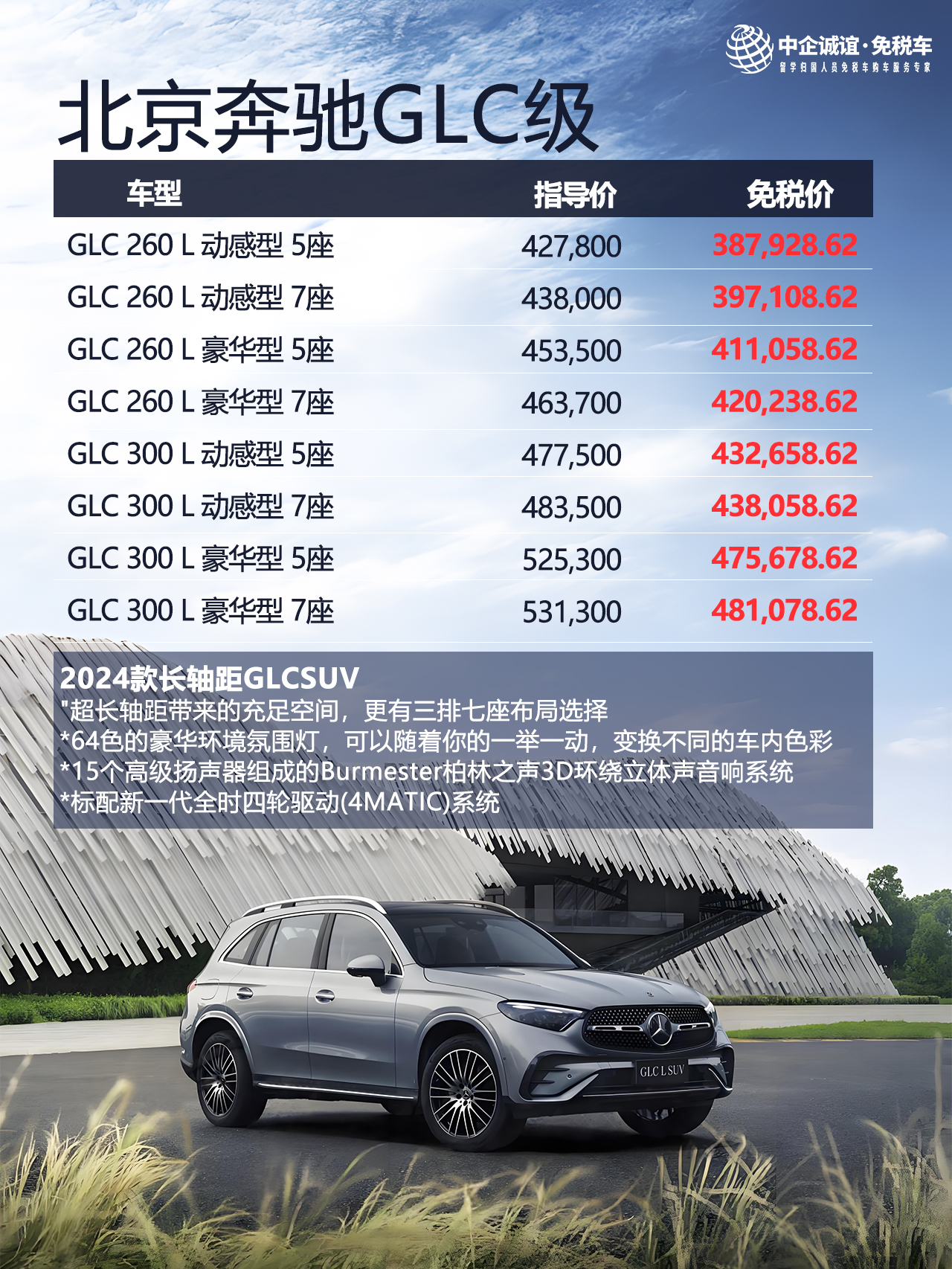 此外,随着市场价格逐步回升,奔驰GLC/奔驰E级车,留学生免税价现阶段相比线下终端落地价仍具备一定优势,且中企诚谊一直在就市场行情与厂家保持密切沟通反馈,后续不排除奔驰免税价会有小幅调整的可能哦,感兴趣的同学可保持密切关注