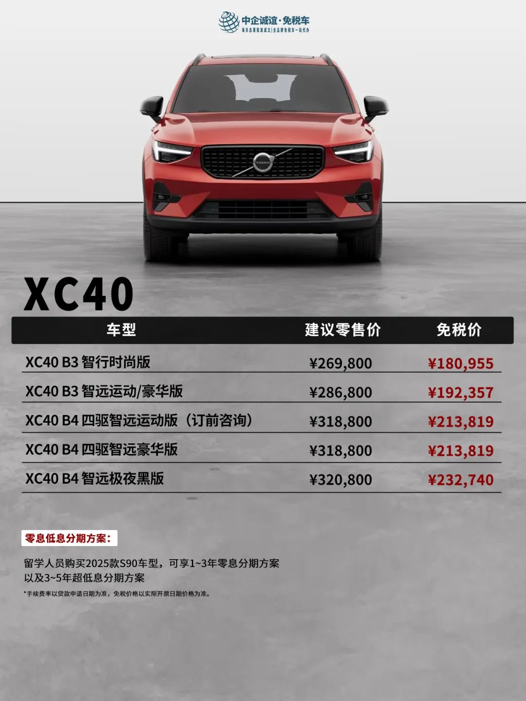 最新沃尔沃留学生免税车免税价及车型调整: