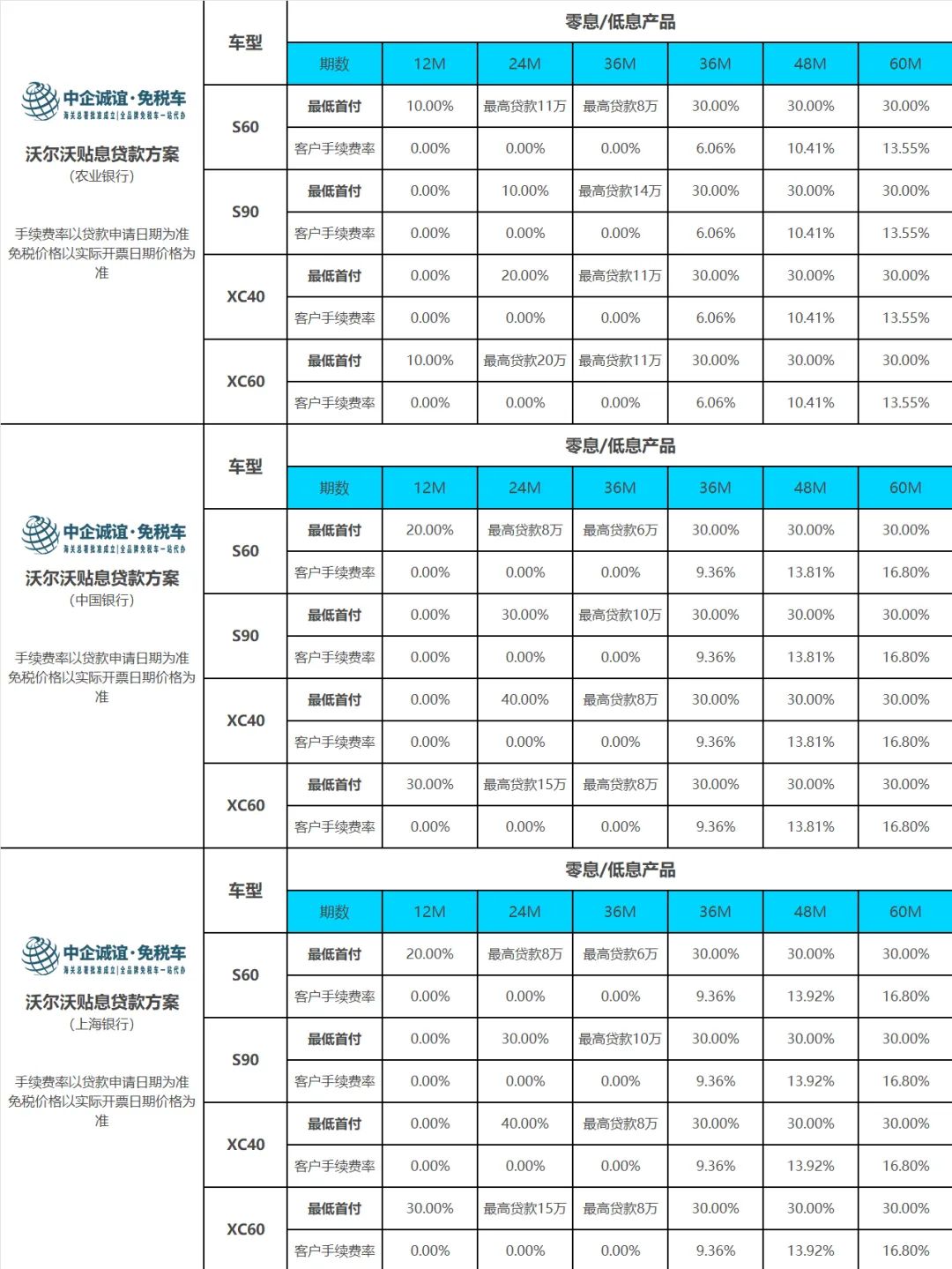 沃尔沃全系新增12-36期0息分期