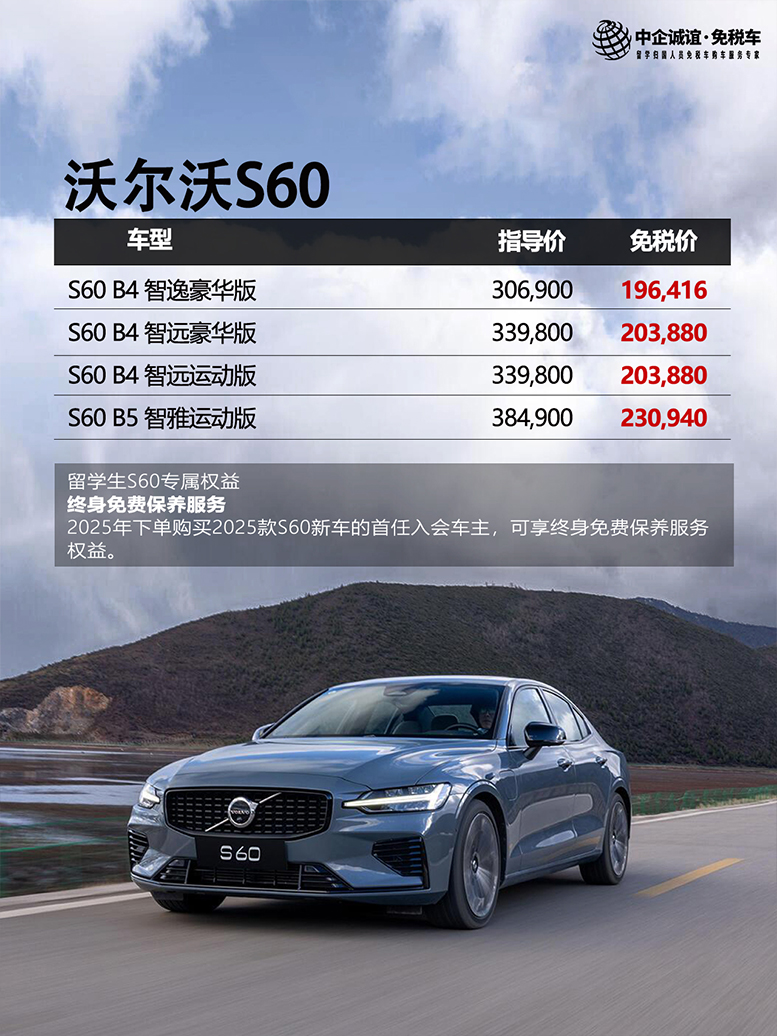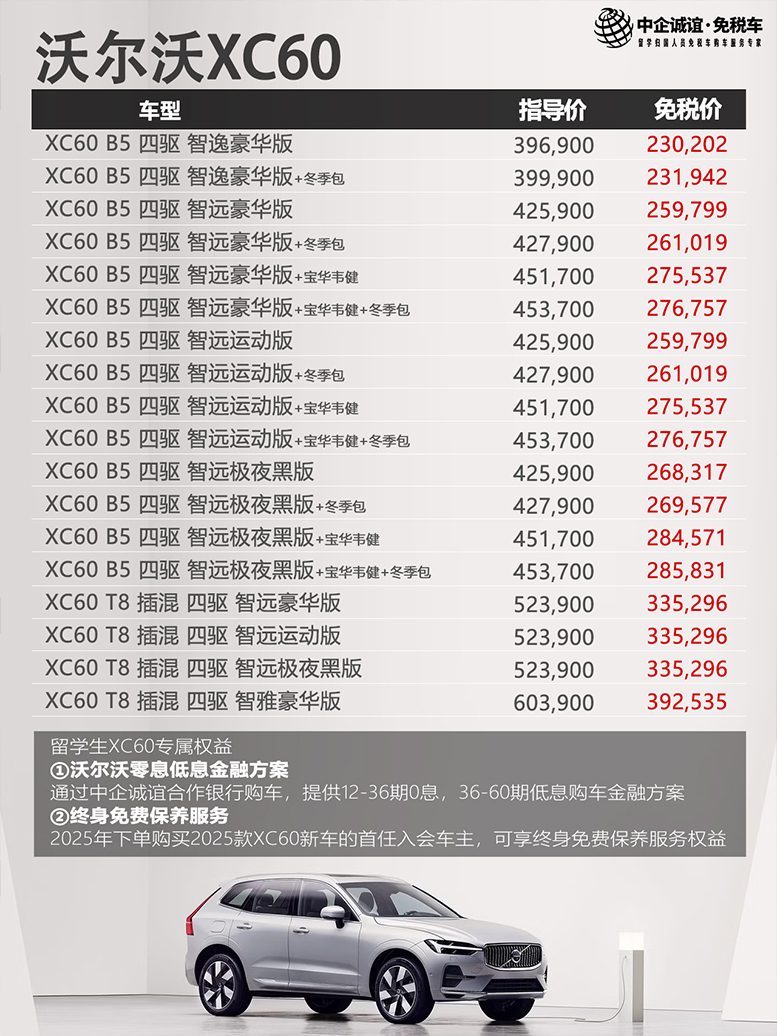热门车型下调|沃尔沃2025年第一季度留学生免税车更新