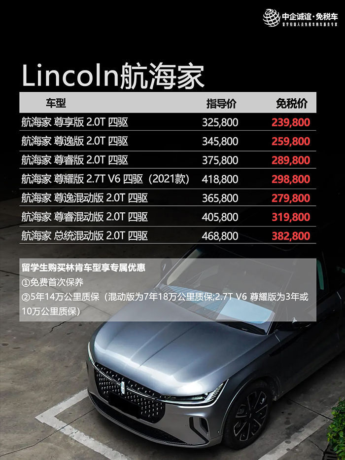 2025年第二季度林肯留学生免税车价格重磅发布!