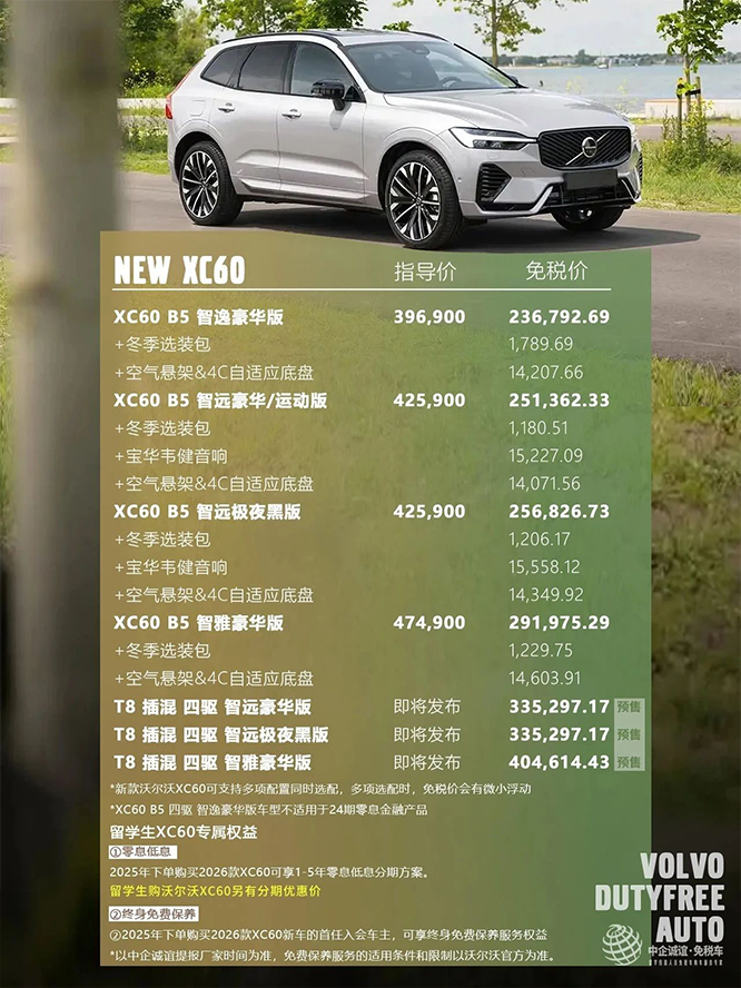今天,2026款XC60和XC40的留学生免税价也火热发布