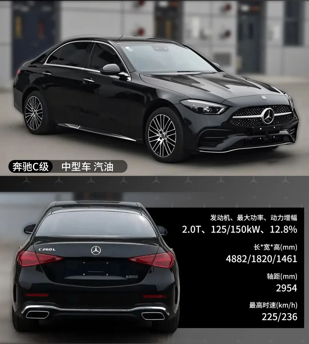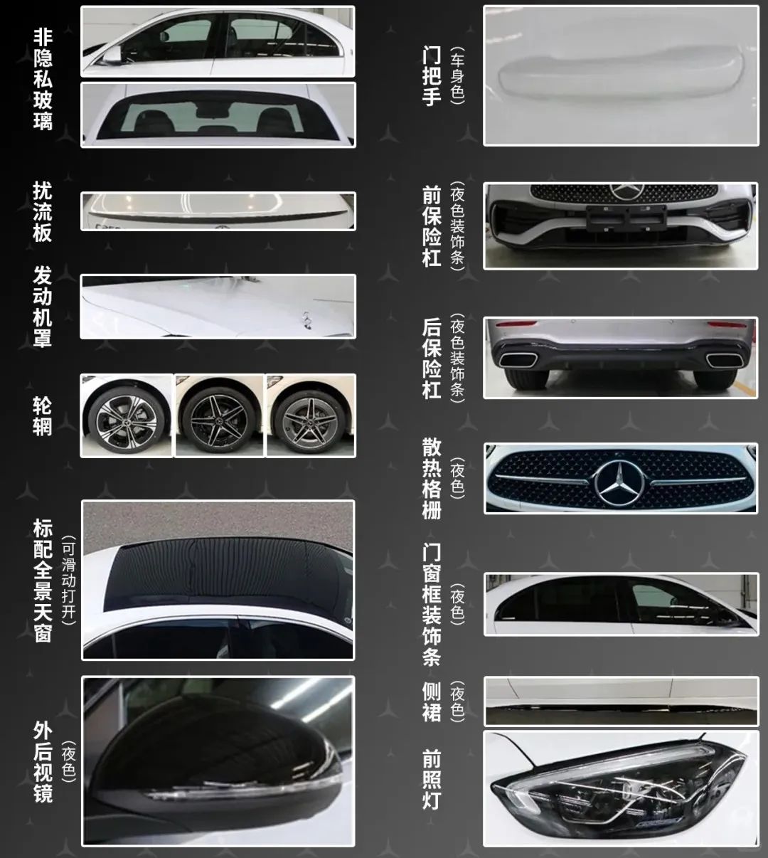 ■改款奔驰 C 级延续家族化设计,搭配同色前包围与导风槽,双边共两出排气增添运动感。