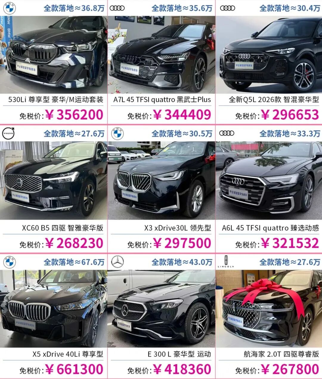 我们整理了90%回国留学生都会重点关注的近期热门车型,涵盖豪华品牌主流轿车、SUV,免税价和全款落地价一目了然,帮你快速锁定心仪目标。